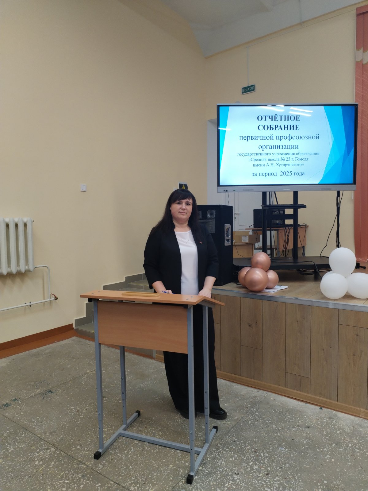 13.02.2026 в государственном учреждении образования "Средняя школа №23 г. Гомеля имени А.Н. Хуторянского" прошло отчетное профсоюзное собрание,где был выполнен анализ мероприятий, дана оценка достигнутых результатов, обсуждены планы и стратегии на будущее.