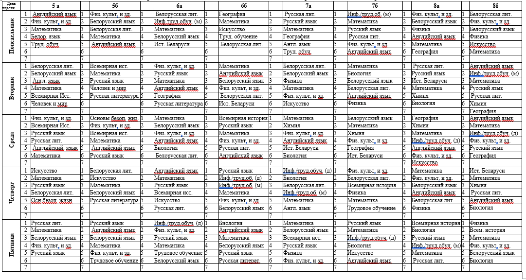 Расписание учебных занятий в 5-8 классах на 2 полугодие 2025/2026 учебного года