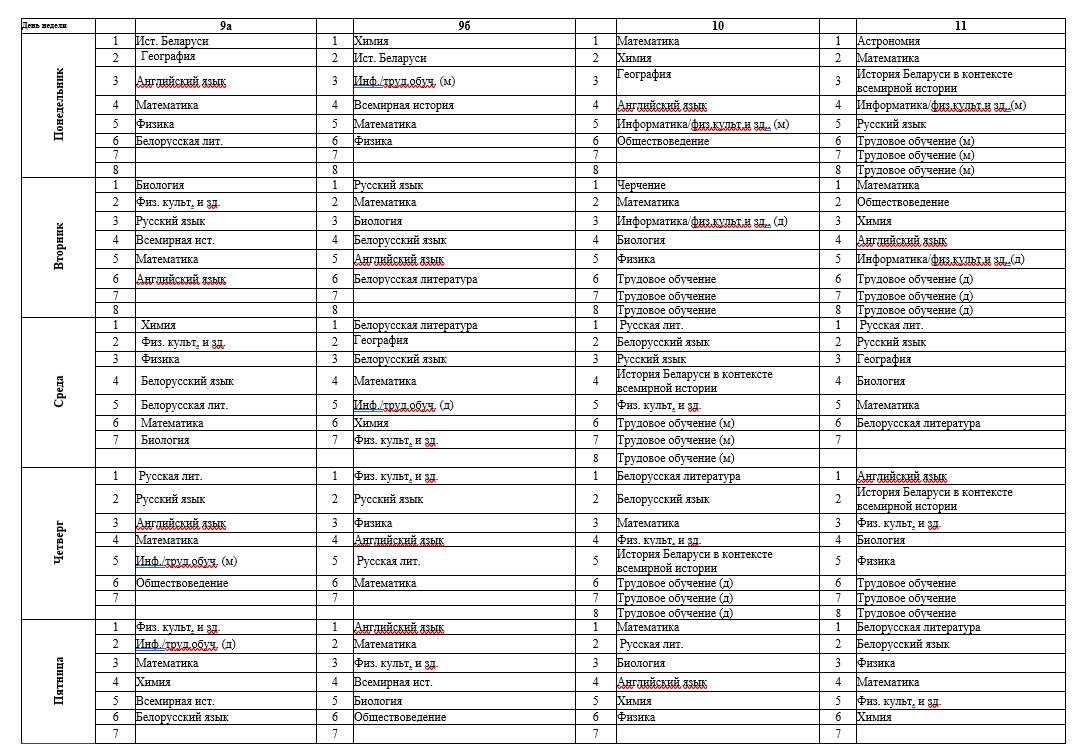 Расписание учебных занятий в 9-11 классах на 2 полугодие 2025/2026 учебного года